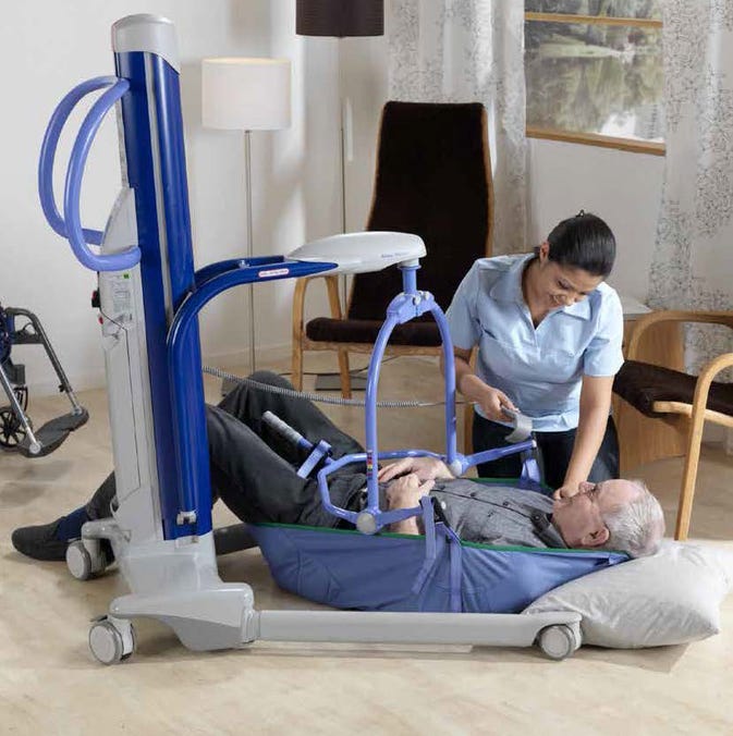 The four-point sling design includes secure clips, integrated head support, and easy-to-clean parts. Colour-coded sizing helps find the right fit quickly, ensuring a safe and comfortable lift every time.